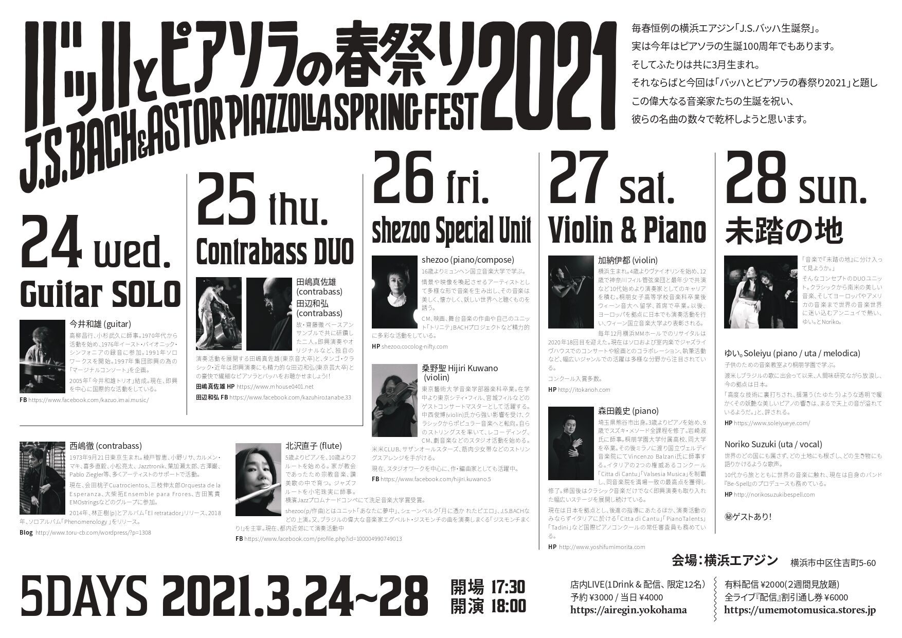スズキ・メソード出身のピアニスト、森田義史さんとの「バッハとピアソラの春祭り2021」の詳細は、こちら。