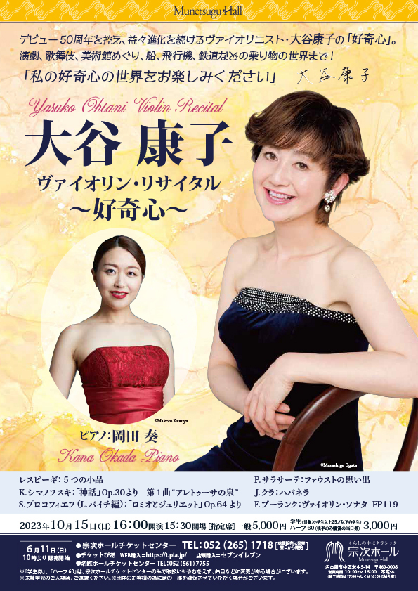 ヴァイオリン科OGの大谷康子さんが出演されます。