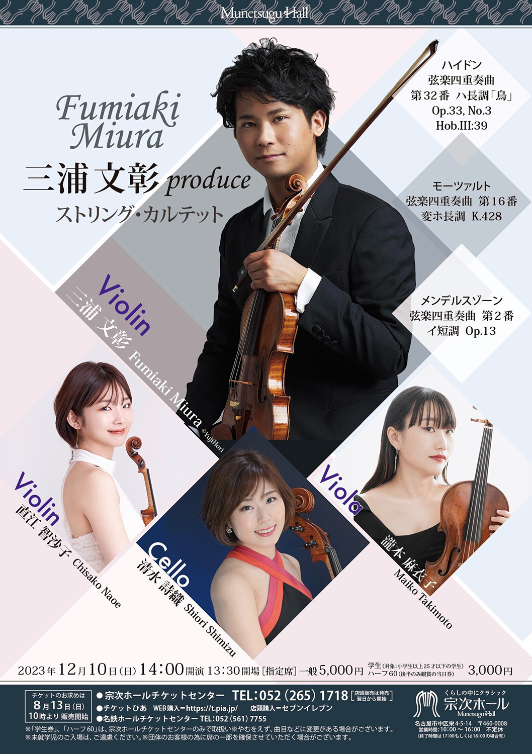 ヴァイオリン科出身でOB・OG会の紿田俊哉さん、守田千惠子さん、守田マヤさんらが出演されます。