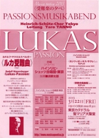 佐竹由美 (ソプラノ)、永島陽子(アルト)、 ツェーガー・ファンダステーネ(テノール)、 浦野智行(バリトン)、 椎名雄一郎(オルガン)、 メンデルスゾーン・コーア & ハインリヒ・シュッツ合唱団・東京 、ユビキタス・バッハ (コンサートマスター:瀬戸瑤子)、淡野太郎(指揮)