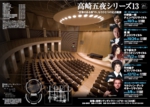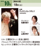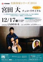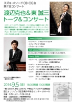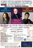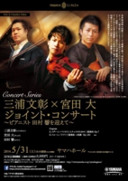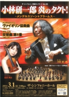- 2014年1月25日(土)19:00開演 OBの石田泰尚さん(ヴァイオリン)と同じくOBの山本裕康さん(チェロ)がブラームスのドッペルコンチェルトで共演されました。伝統に裏打ちされた鋭い感性と飽くなき探究心、そして愛情あふれる音楽づくり―音楽の悦びを教えてくれるウィーンの名指揮者・ゲッツェルがいよいよ、首席客演指揮者として神奈川フィルの指揮者陣に加わります。神奈川フィルが誇る名手・石田泰尚、山本裕康との共演で、至福の音楽の時間となりました。 横浜みなとみらいホール サッシャ・ゲッツェル(指揮)、石田泰尚(ヴァイオリン)、山本裕康(チェロ)、神奈川フィルハーモニー管弦楽団(管弦楽) 【入場料】S席:6,000円(完売)、A席:4,500円(完売)、B席:3,000円、学生(B席): 1,000円(全席指定) ※ 未就学児童のご入場はご遠慮ください。 曲目 ・ブラームス:ヴァイオリンとチェロのための二重協奏曲 ・ワーグナー:歌劇「タンホイザー」序曲 ・R.シュトラウス:バラの騎士」組曲 《問》神奈川フィル・チケットサービス tel.045-226-5107