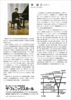 恒例となったOBの東誠三さんの大阪リサイタルも今年で7回目を迎えました。東京藝大の准教授や ジュネーブ国際音楽コンクールの審査員などの活動を背景に、ピアノの持つ潜在力を極限まで引き出す演奏活動は、近年ますます評価が高まっている。一度、東誠三の演奏を聴くと、ピアノのイメージを覆す。音の美しさと豊かな音楽性が聴衆の心を捉えて離さない。今回は得意のショパンと、昨年絶賛された色彩豊かなスペインもの、そしてブラームスでどのような新境地を見せるか楽しみである。
