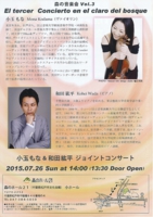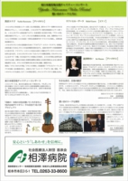- 2015年1月11日(日)13:55開演 OBの川名啓文さん(ヴァイオリン)が新年のお弾き初めコンサートに出演されました。 東京文化会館内4階音楽資料室鑑賞室 川名啓文(ヴァイオリン)、林翔子(ピアノ) 【入場料】無料 曲目 ・ショパン:円舞曲第1番変ロ長調作品18番「華麗な大円舞曲」 ・ブラームス:円舞曲から第1番 ・シューマン:トロイメライ ・ザイツ:学生のためのヴァイオリン協奏曲第2番ト長調第3楽章 ・ザイツ:学生のためのヴァイオリン協奏曲第5番ニ長調第1、3楽章 ・シューベルト:子守唄 ・ブラームス:子守唄 ・ラヴェル:逝ける王女のためのパヴァーヌ ・久石譲:シネマノスタルジア 《問》川名 tel.090-6483-7049 メールアドレス