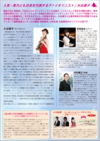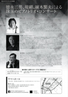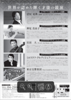 ヴァイオリンの巨匠、オレグ・クリサ氏の妻でピアニストだったタチアナ・チェキーナは、1年前に自動車事故で他界されました。ご夫婦の素晴らしいデュオを、日本でも何回も聴かせてくれた彼女を偲び、クリサ氏、そして息子のピーター・クリサを、彼らと縁のある日本の演奏家たちが囲んでの演奏会を行ないました。OGの水野佐知香さん(ヴァイオリン)、千葉純子さん(ヴァイオリン)、物集女純子さん(ヴァイオリン)らが出演されました。