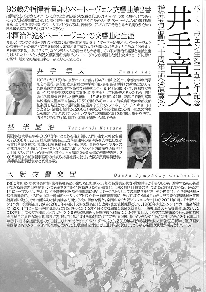 井出章夫(指揮)、桂米團治(ナビゲーター)、大阪交響楽団(管弦楽)