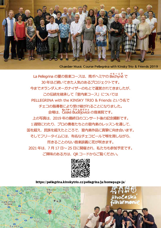 OB・OG会事務局の新 巳喜男さんがチェコのチェスケー・ブディェヨヴィツェで開催されているLa Pellegrina音楽祭の仲間たちと、室内楽コンサートに出演されました。