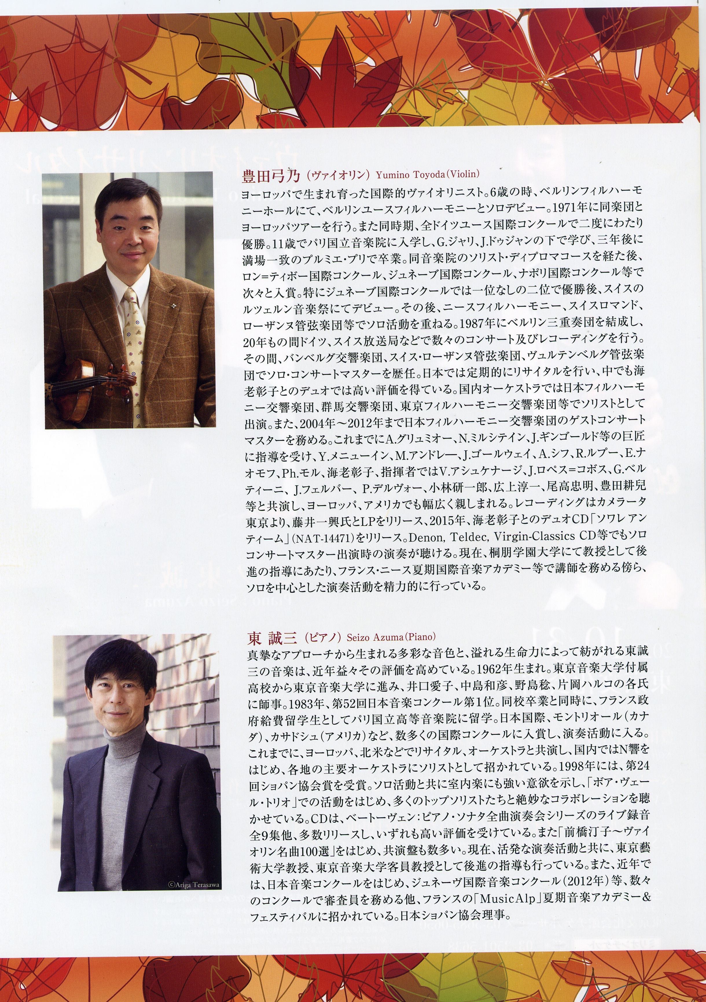 スズキ・メソード出身のヴァイオリニスト、加納伊都さんの年末恒例のリサイタルが、今年は11月に開催されました。今回は、ピアノ科出身のピアニスト、森田義史さんとの共演でした。