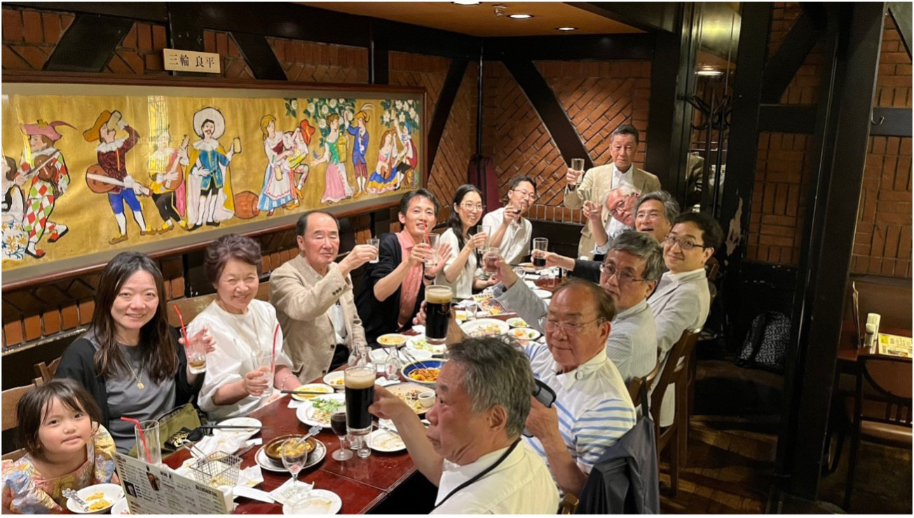 終演後は集合写真を撮って、夕方に懇親会会場へ移動。新宿の小田急ハルクの地下にあるドイツ料理「ミュンヘン」です。江村先生や今回のコンサートに聴きに来てくださった小林庸男先生をはじめ、OB・OGと異業種交流を深め、楽しいひとときとなりました。