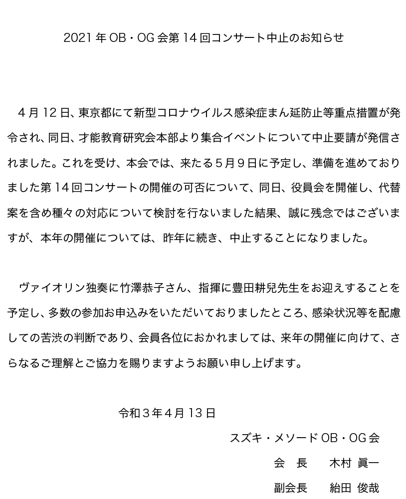 スズキ・メソード OB ·OG会 会長