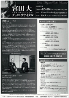 - 2014年1月8日(水)19:00開演 チェロ科OGの黒川実咲さんが、ピアノトリオのコンサートに出演されました。 電気文化会館ザ・コンサートホール 小坂井聖仁(ヴァイオリン)、黒川実咲(チェロ)、古田友哉(ピアノ) 【入場料】3,000円、学生:2,500円 曲目 ・ドビュッシー:ピアノ三重奏曲 ト長調 ・シューマン:幻想小曲集 イ短調 0p.88 ほか 《問》ON music project(北川) tel.080-4300-7611