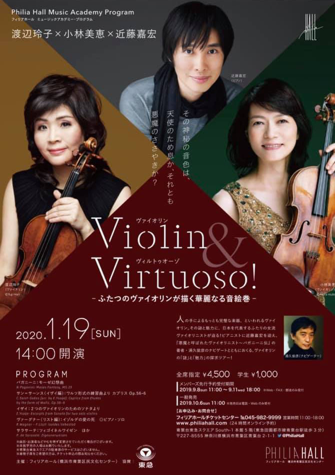 渡辺玲子(ヴァイオリン)、小林美恵(ヴァイオリン)、近藤嘉宏(ピアノ)