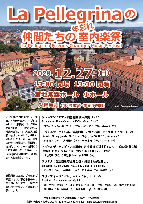 OB・OG会事務局の新 巳喜男さんがチェコのチェスケー・ブディェヨヴィツェで開催されているLa Pellegrina音楽祭の仲間たちと、室内楽コンサートに出演されました。