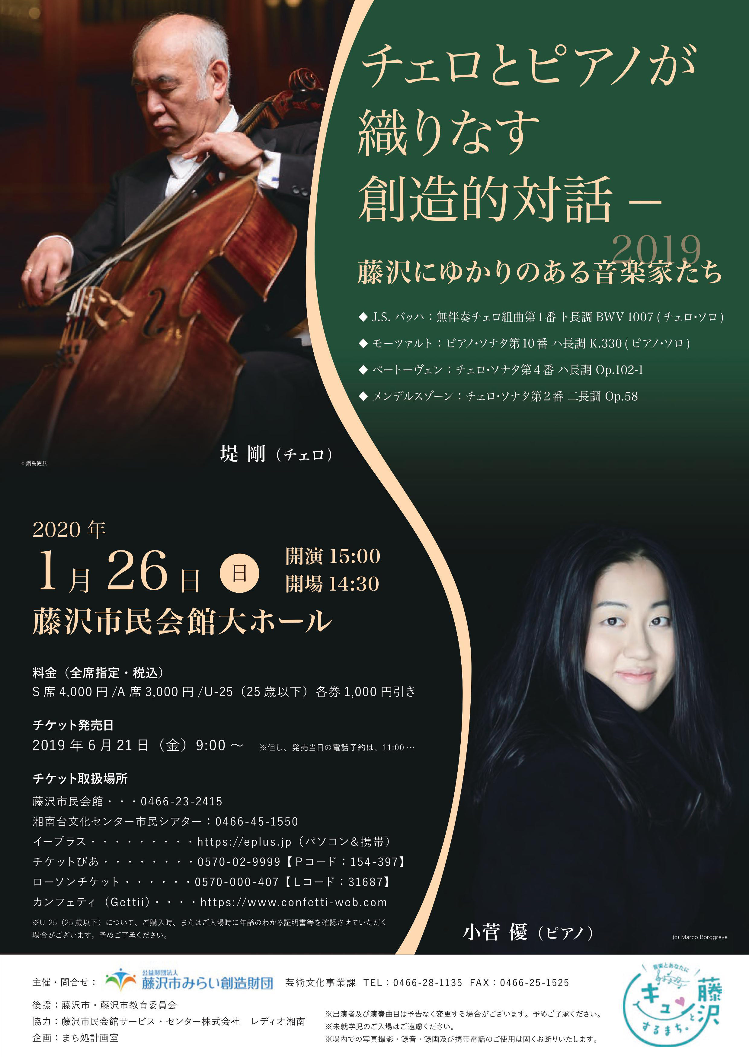 藤沢にゆかりのある音楽家たちのシリーズ、今回は堤剛さんと小菅優さんのお二人によるデュオコンサートでした。