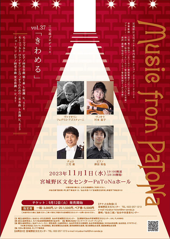 ヴァイオリン科出身でOB・OG会の紿田俊哉さん、守田千惠子さん、守田マヤさんらが出演されます。