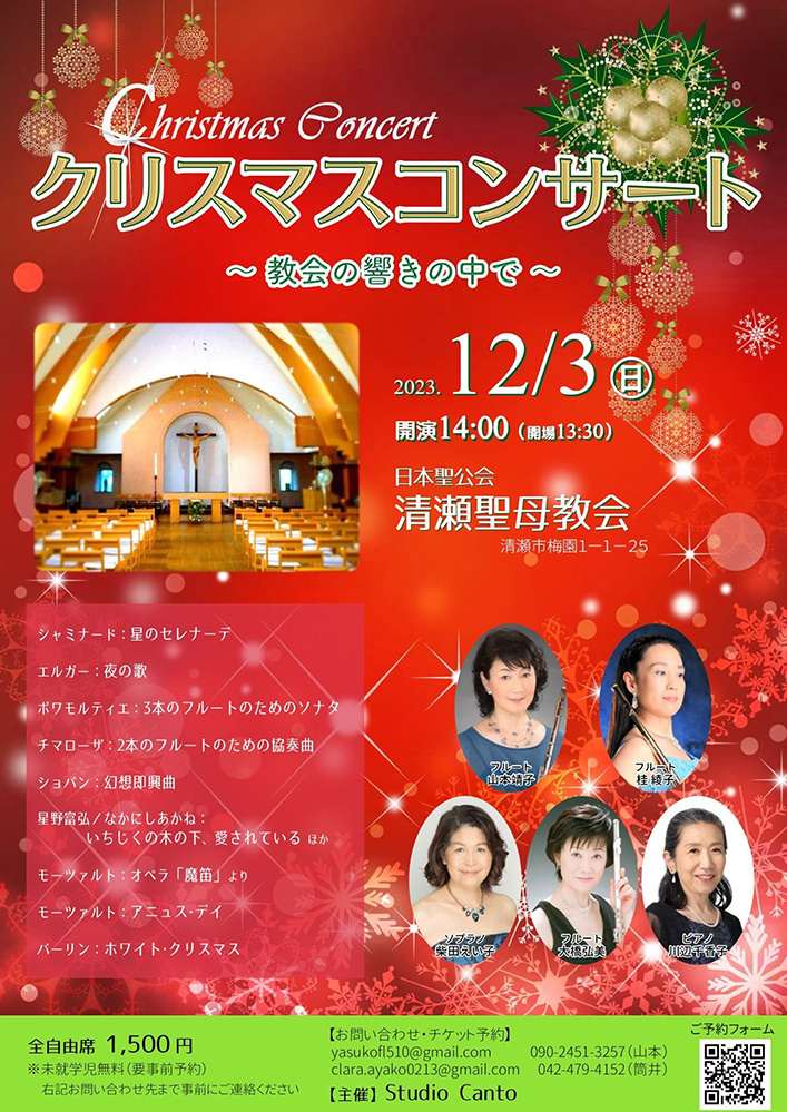 Ob櫻井芳夫、Fl櫻井理恵、Org/Cem上松康子