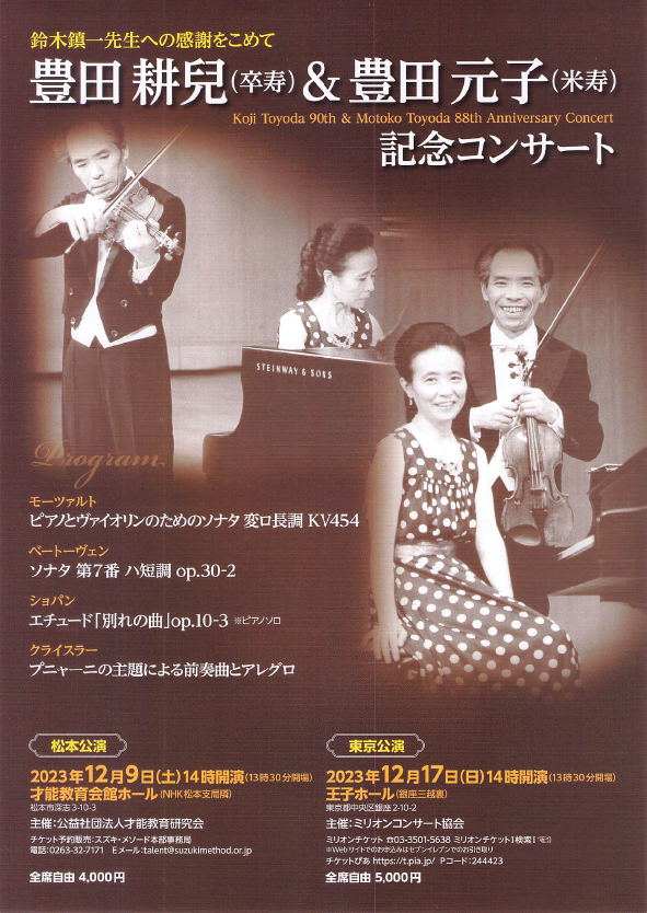 ヴァイオリン科OGの小林美恵さん、川本嘉子さんらが出演されます。